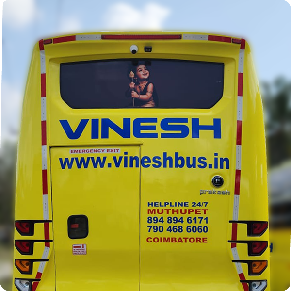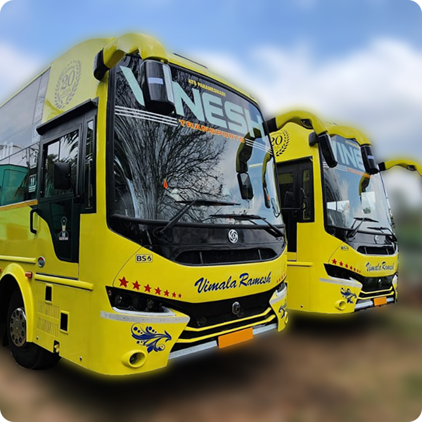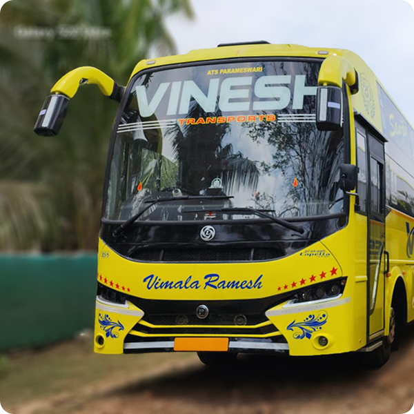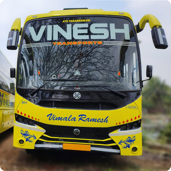 Happy journeys, safe destinations - Our Vinesh Bus is with you, ensuring comfort, care, and smiles along the way. Because every mile with us is a promise of trust, safety, and happiness.